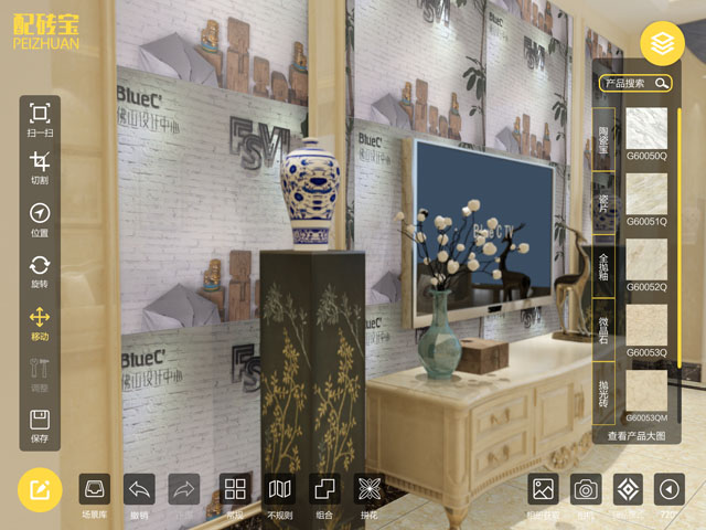 想懂得瓷砖和空间之间的关系,靠叵测是永远无法达到的!我们需要高瞻远瞩的趋势感,也需要务实有效的内涵。包容已有的瓷砖应用方式, 也智造来自未来的瓷砖应用方式!在墙面、(任意挑花、挑砖、自然、创意的铺法解决方案)地面的任何地方你都可以将你与众不同的瓷砖铺贴上去!想放哪里就放那里,智造你的无限空间!这是配砖宝为你带来的无限铺贴功能!赋予瓷砖灵魂!配砖宝2.0为你做到!